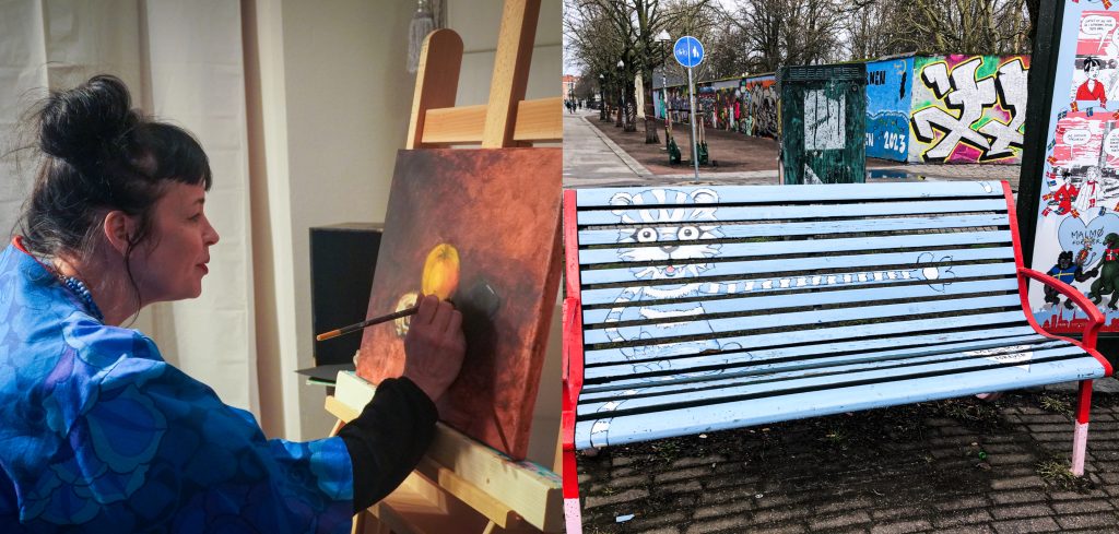 Jenny Holmlund har gjort serier och bänkar på Möllevången. Foto: Zoë Lua.