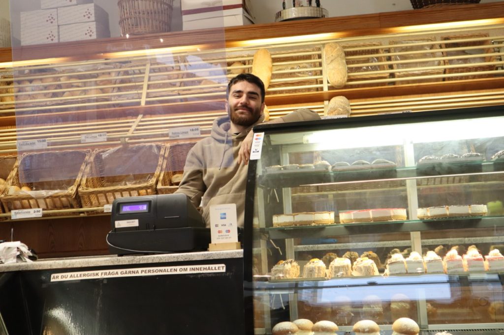 Mohammed jobbar i bageriet Amin som han äger med sin pappa. Bageriet ligger på Nydalatorget och har funnits i 13 år.